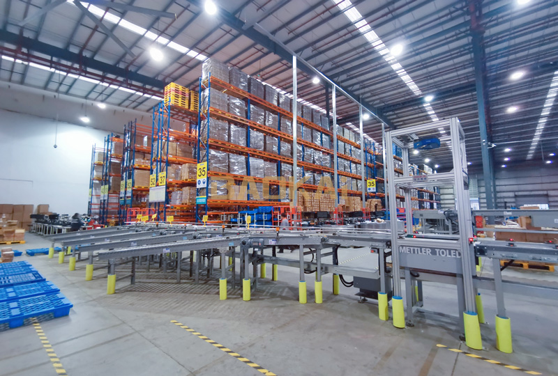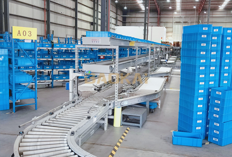 播種包裝線,利用輸送系統(tǒng)打通了電子標(biāo)簽播種區(qū)的提總貨物的補(bǔ)給工作。播種完成后往包裝區(qū)域輸送(采用積放式布局,充分的實(shí)現(xiàn)包裝區(qū)域的貨等人的場景),包裝完成后空箱回流流向播種區(qū),整體可實(shí)現(xiàn)電商2000單/小時(shí)的發(fā)貨任務(wù)。