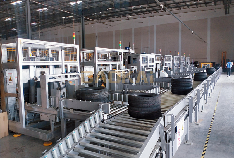 汽配行業(yè)新項(xiàng)目:集成了臥式環(huán)體打包機(jī)、輸送線、直角分合流等硬件設(shè)備;技術(shù)上實(shí)現(xiàn)了前置掃描到后置貼標(biāo)的全程實(shí)時(shí)跟蹤,一期八臺(tái)打包機(jī),可滿足480個(gè)輪胎/小時(shí)的打包效率,采用的分合流裝置,輸送效率可以滿足未來960個(gè)輪胎/小時(shí)的分合輸送效率。