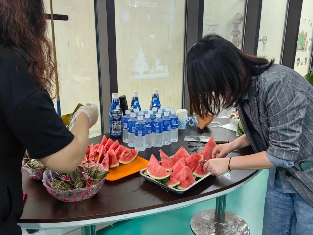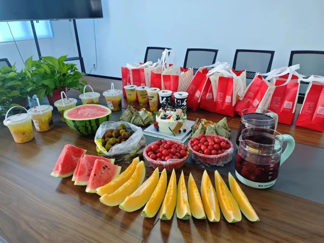寶開工會委員會提前籌備,準(zhǔn)備了生日蛋糕、不同口味的粽子、水果、飲料等。