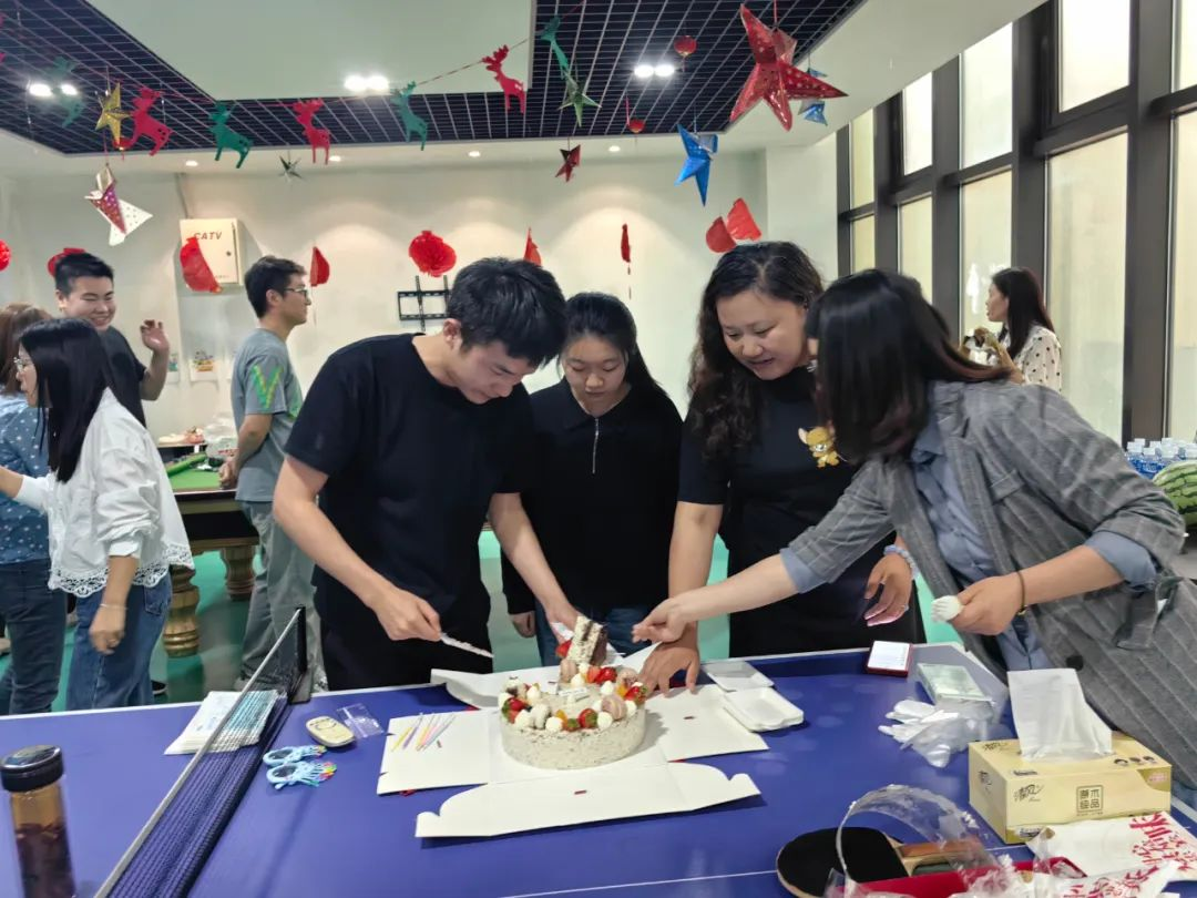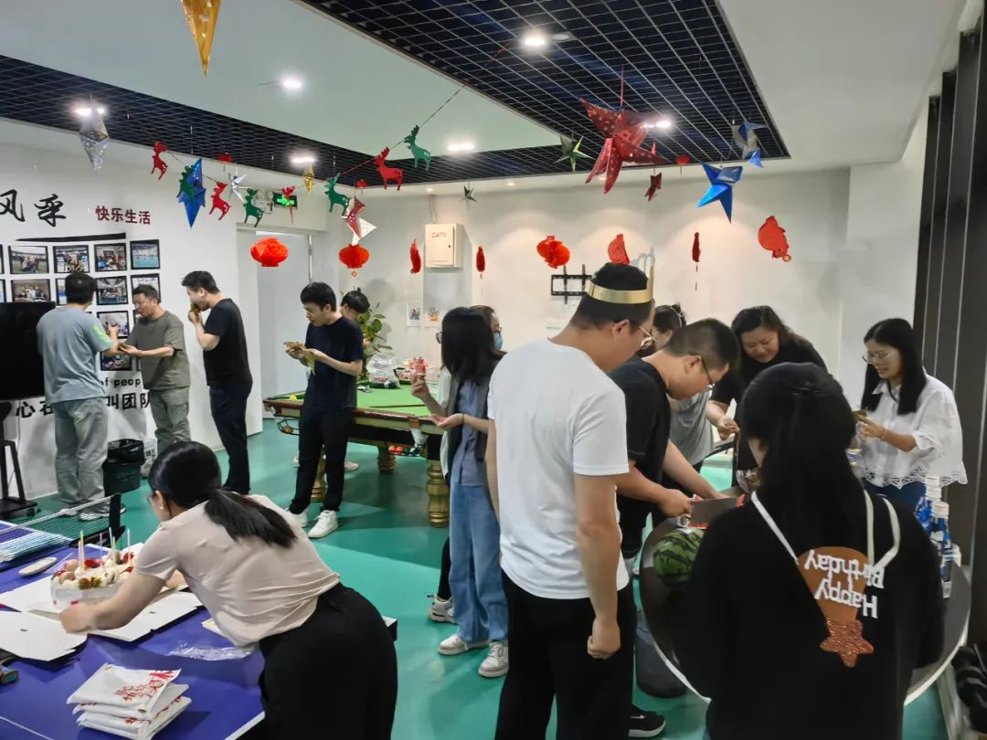 嘉興分公司現(xiàn)場生日會和慶?;顒右餐竭M行,辦公室內(nèi)歡樂滿滿,其樂融融。