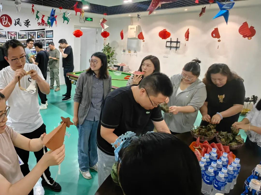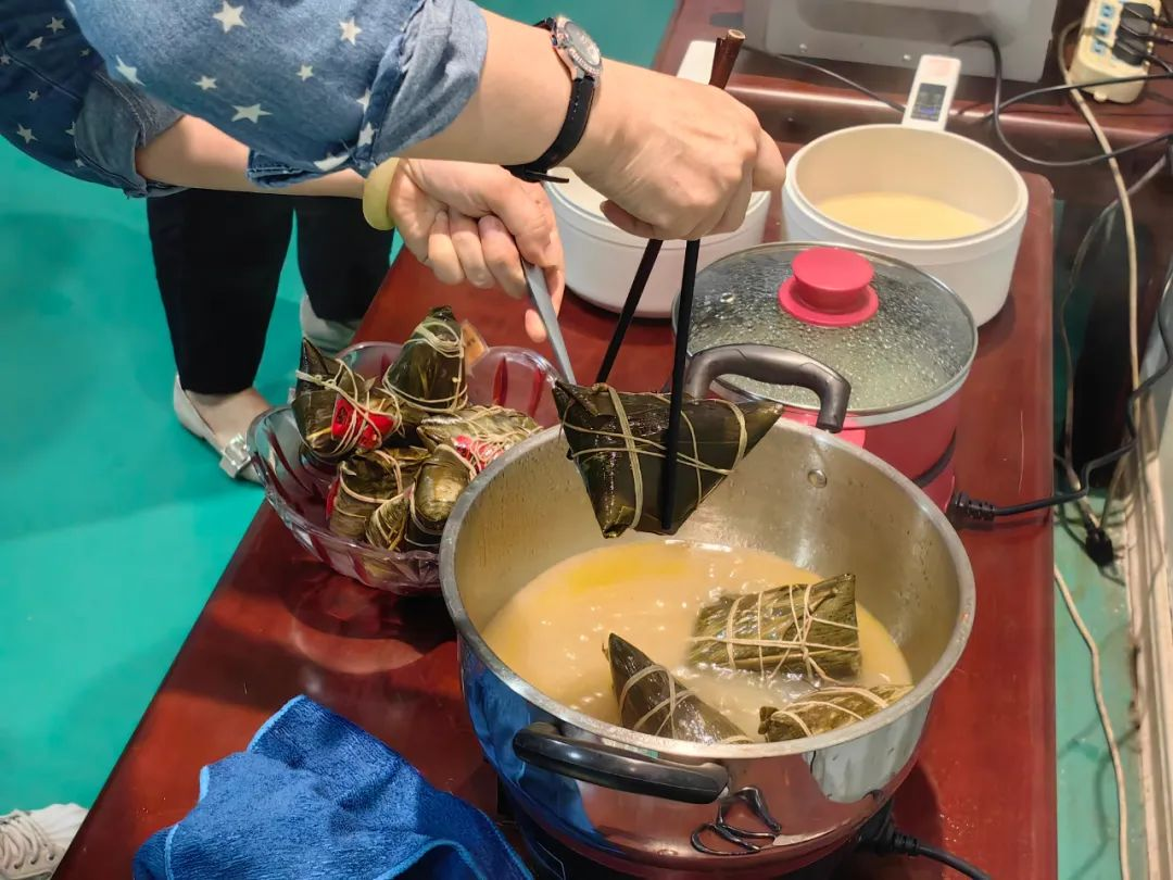中午時分,煮熟的熱騰騰的粽子出鍋,全體同事來到活動室,共享端午佳節(jié)的團聚時光。
