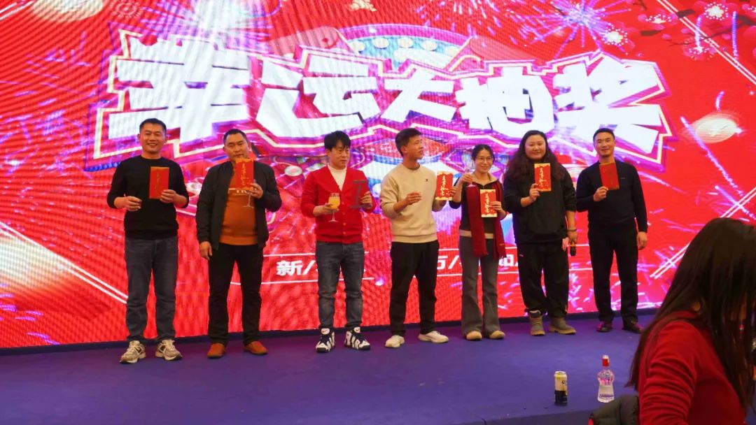 各位領(lǐng)導(dǎo)逐一上臺為大家抽取并為幸運兒頒發(fā)獎品,同時臨時增設(shè)超額獎勵和隨機(jī)紅包,逐漸將晚宴氣氛推向高潮。